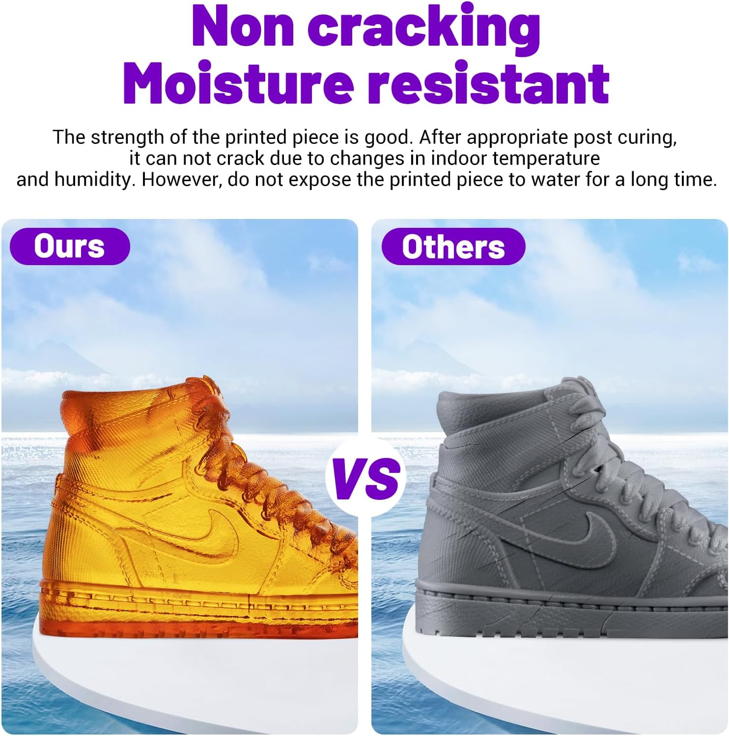 - 【Durable and Moisture-Resistant】Die robuste Stärke unseres UV Resin stellt sicher, dass gedruckte Teile nach der richtigen Nachhärtung unter unterschiedlichen Innenraumtemperaturen und Feuchtigkeitsbedingungen nicht reissen. Die
