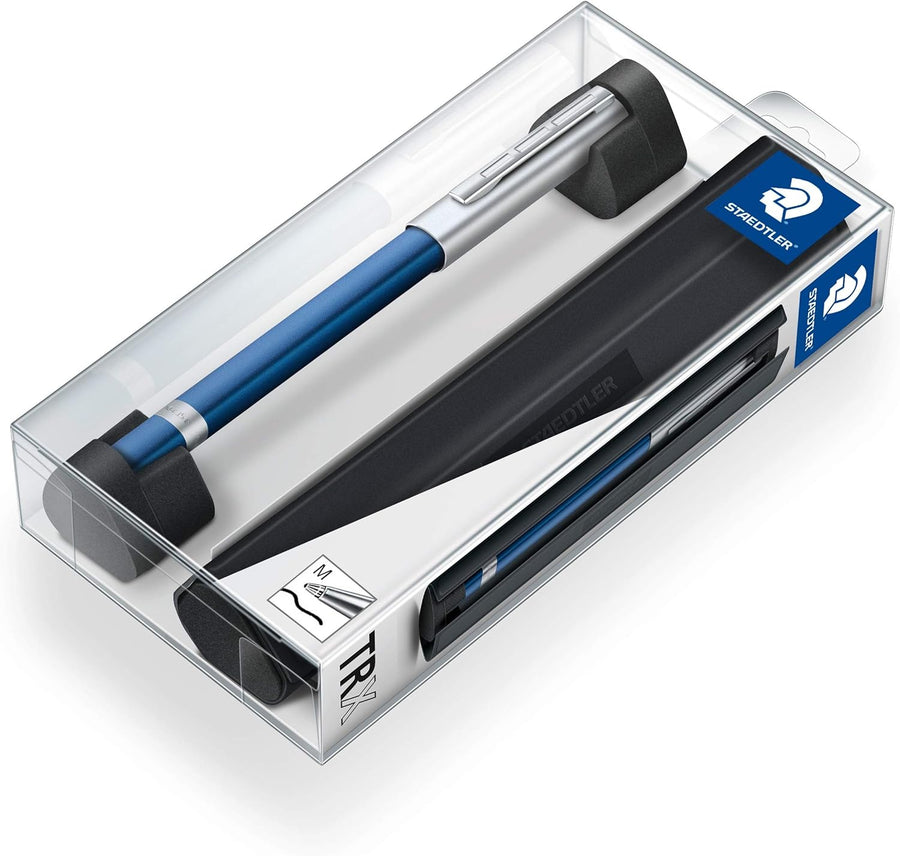 - Lieferumfang: Staedtler Etui mit einem Tintenroller TRX in der Farbe blau mit Patrone, Strichstärke: M, Schreibfarbe: schwarz