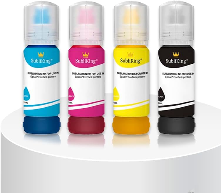 - ✔️Hervorragende Tintenstabilität: 1. Die Subliking EcoTank Sublimationstinte hat eine niedrige Viskosität. Um ein Verstopfen des Druckkopfs zu vermeiden und einen reibungslosen Druck durch Filtration mit drei Mikrometern zu erreichen. 2.