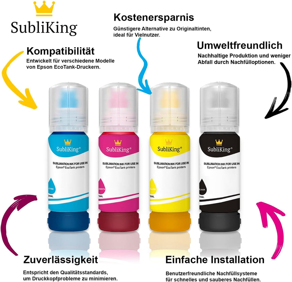 - ✔️Subliking EcoTank für alle Epson EcoTank Drucker mit speziellem Adapter zum Befüllen der Tintentanks