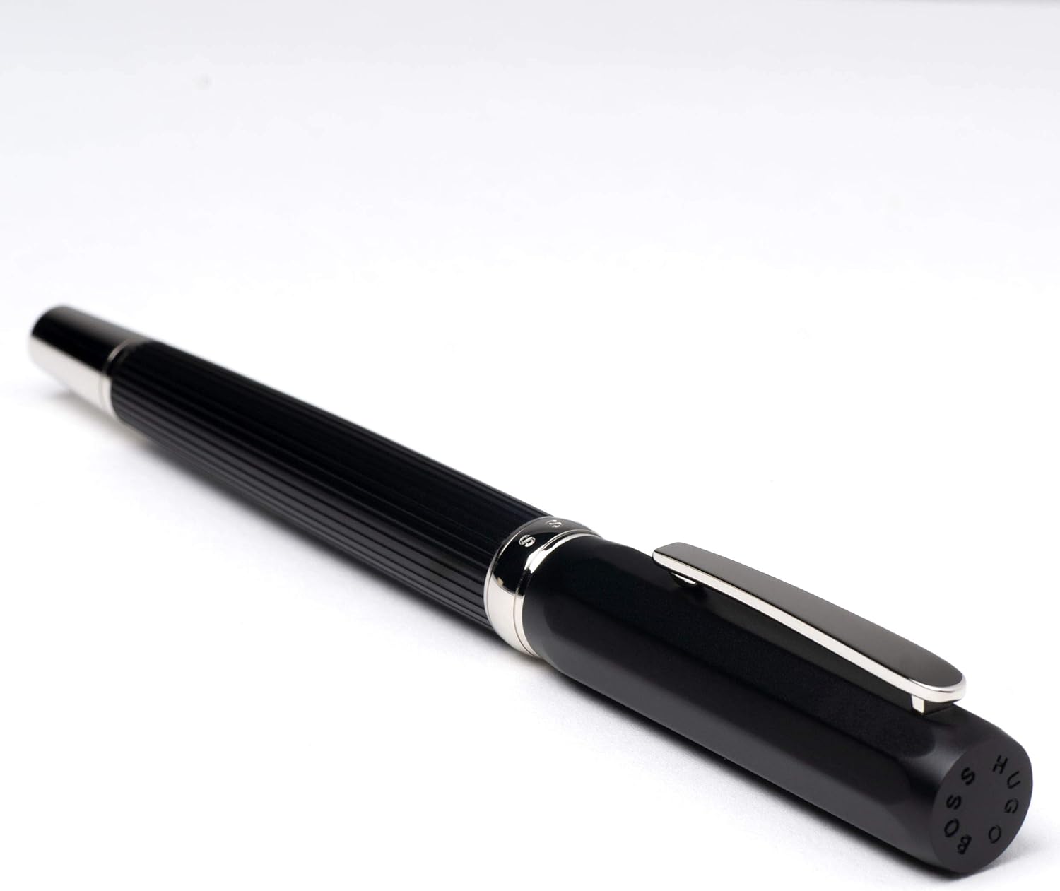 - Dieser ultimative, mutige und luxuriöse Tintenroller wird mit glänzenden Chrom-Metall-Akzenten angeboten.