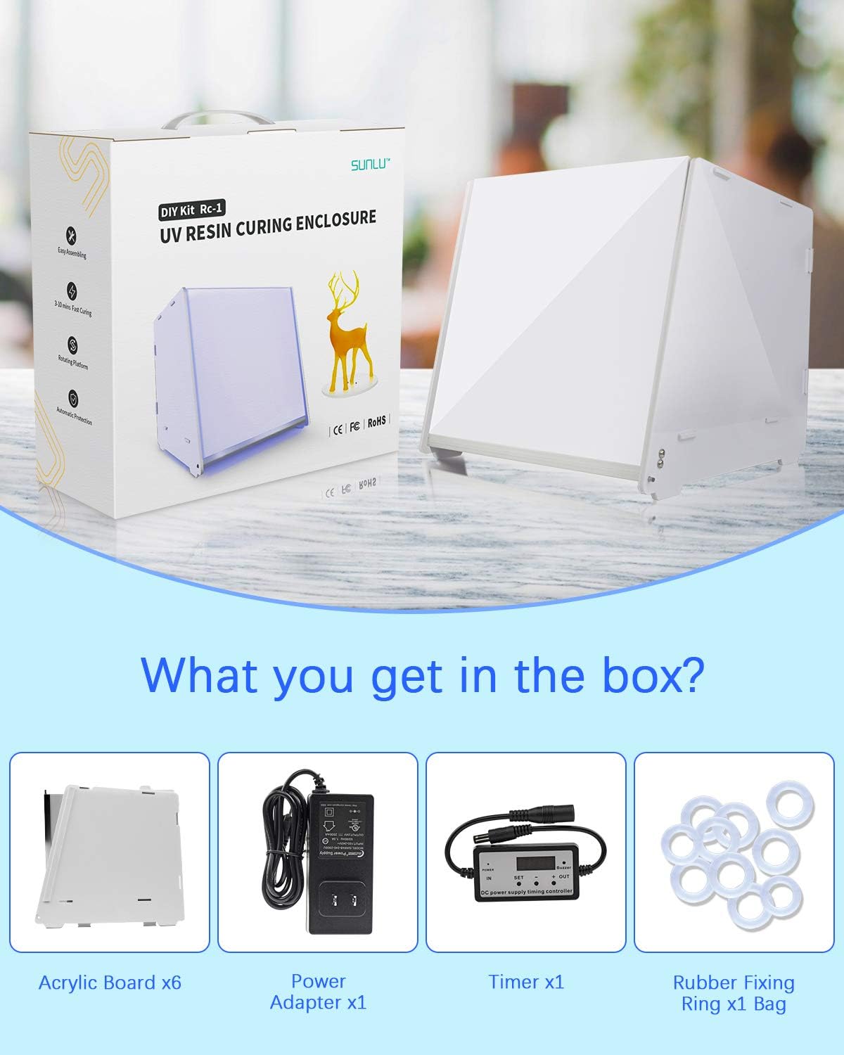 - ⑤【Benutzerfreundliches Design und 1 Jahr garantierter Kundendienst】 SUNLU UV-Harz-Aushärtungsbox Mit speziellem optischen Filtermaterial werden ultraviolette Strahlen von Leckagen ferngehalten, um einen hervorragenden Aushärtungseffekt zu