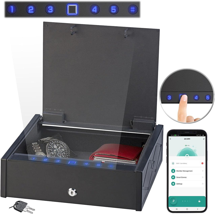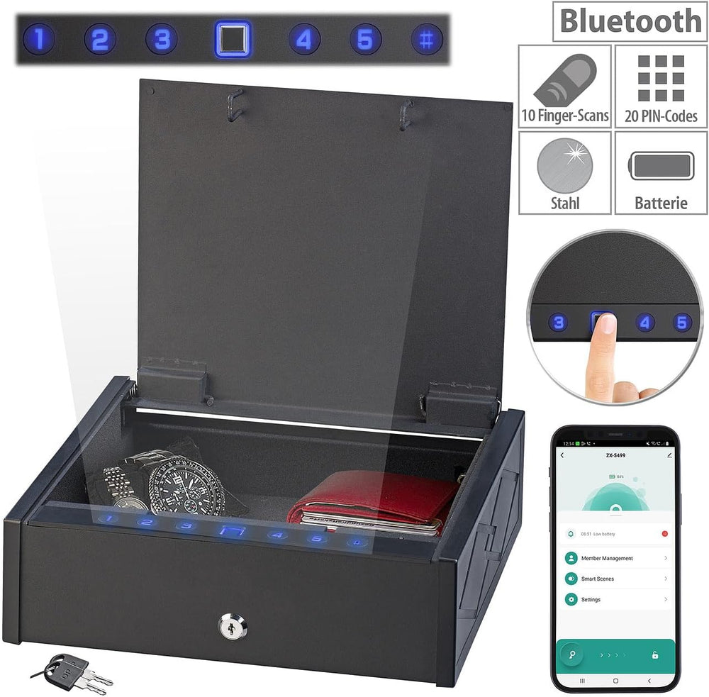 - Öffnen per biometrischer Fingerabdruck-Erkennung, PIN, App, oder Schlüssel • Weltweite Steuerung per optionalem WLAN-Gateway möglich • Zum Anschrauben oder sichern per Stahlseil • Sicherer Schutz für Geld, Schmuck, Dokumente und Wertsachen •