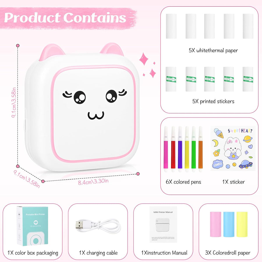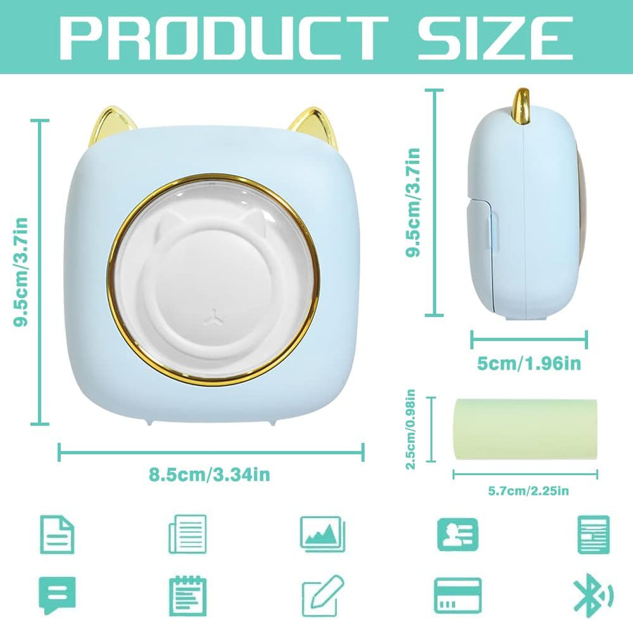 cabaro Mini Drucker Aufkleber Drucker Fotodrucker mit 3 Rollen Bluetooth Thermodrucker für Lernen, S