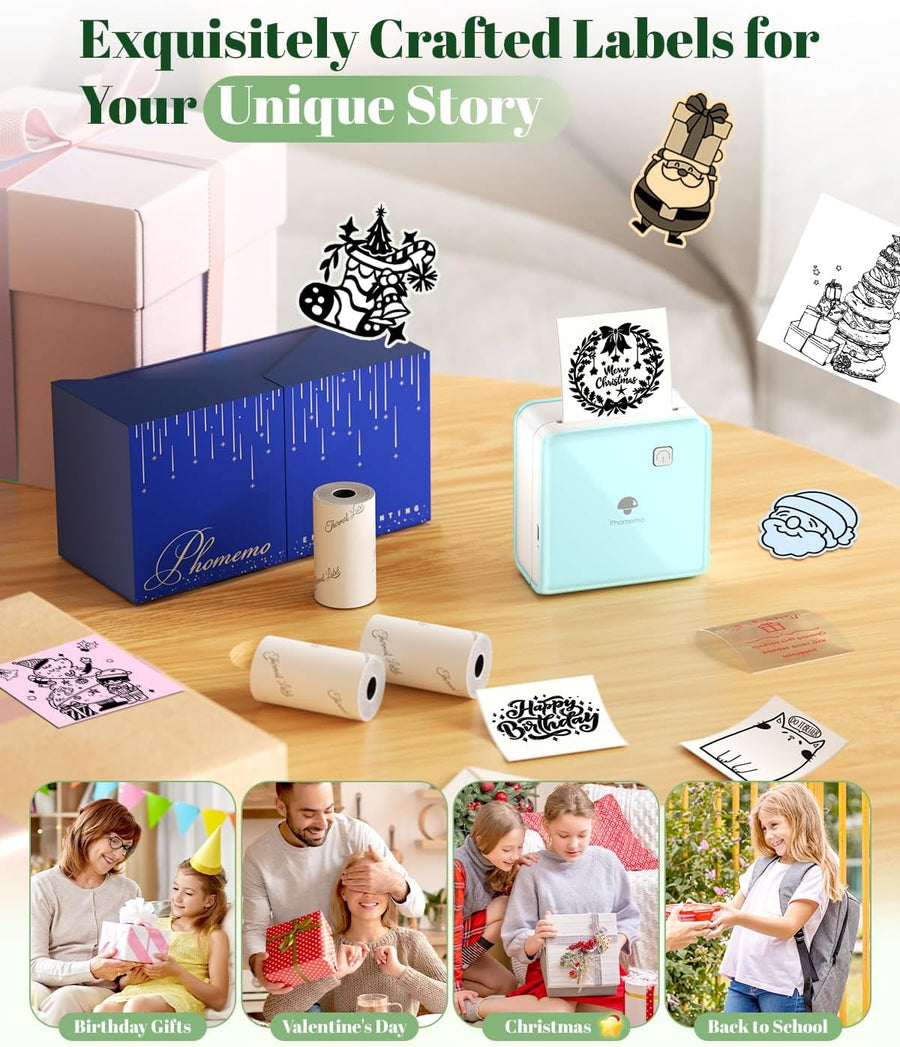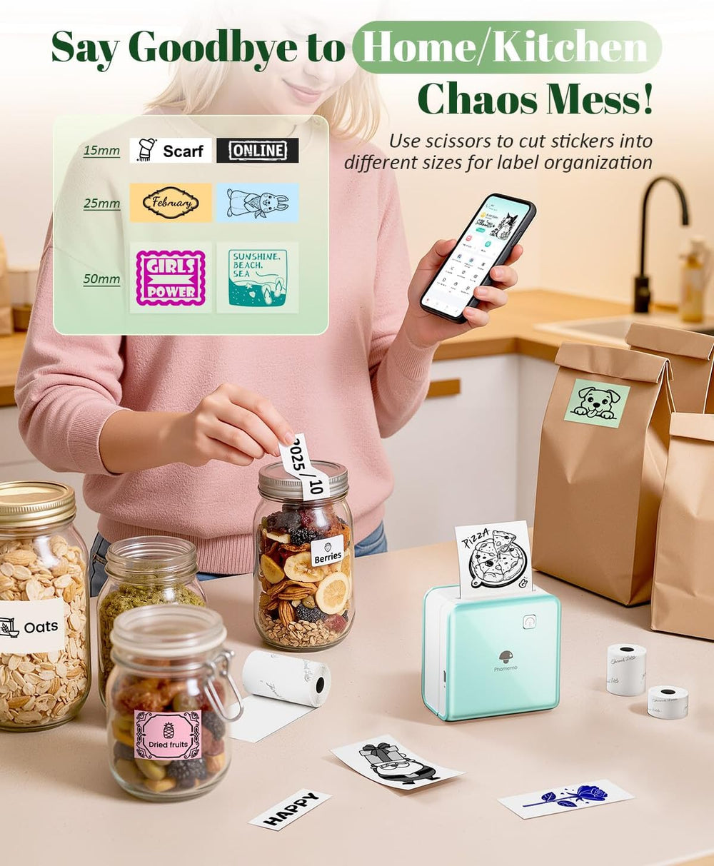 Phomemo Mini Drucker Drucker für Smartphone, P2S Bluetooth Aufkleber Drucker für Lernen, Mini Tragba