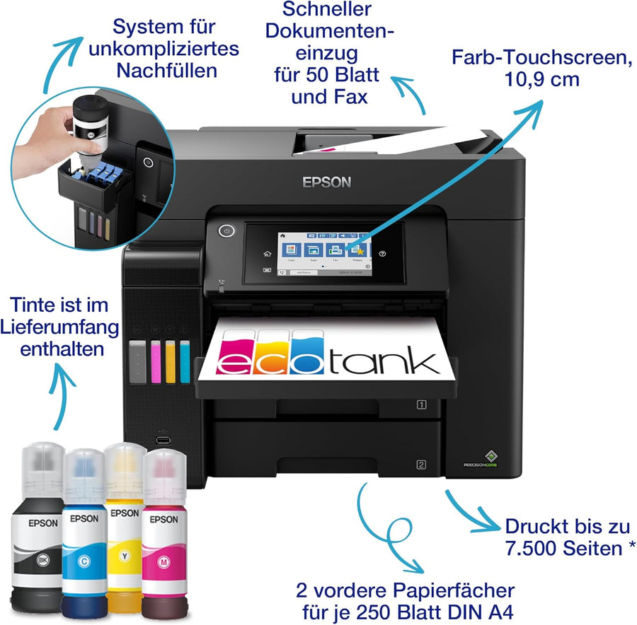 Epson EcoTank ET-5850 DIN-A4-Multifunktions-WLAN-Tintentankdrucker mit Fax, ET-5850