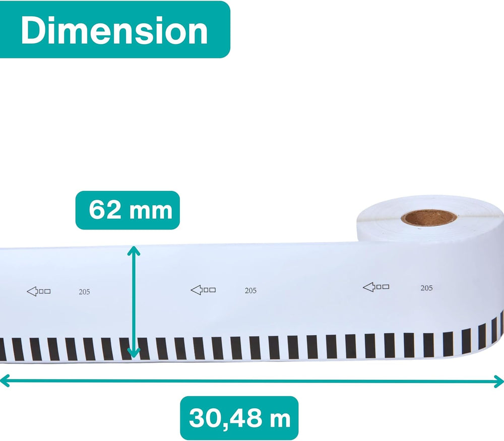 Double Dragon 10 Rollen DK-22205 Endlospapier Etiketten, 62mm x 30,48m, für Brother QL Drucker (QL-8