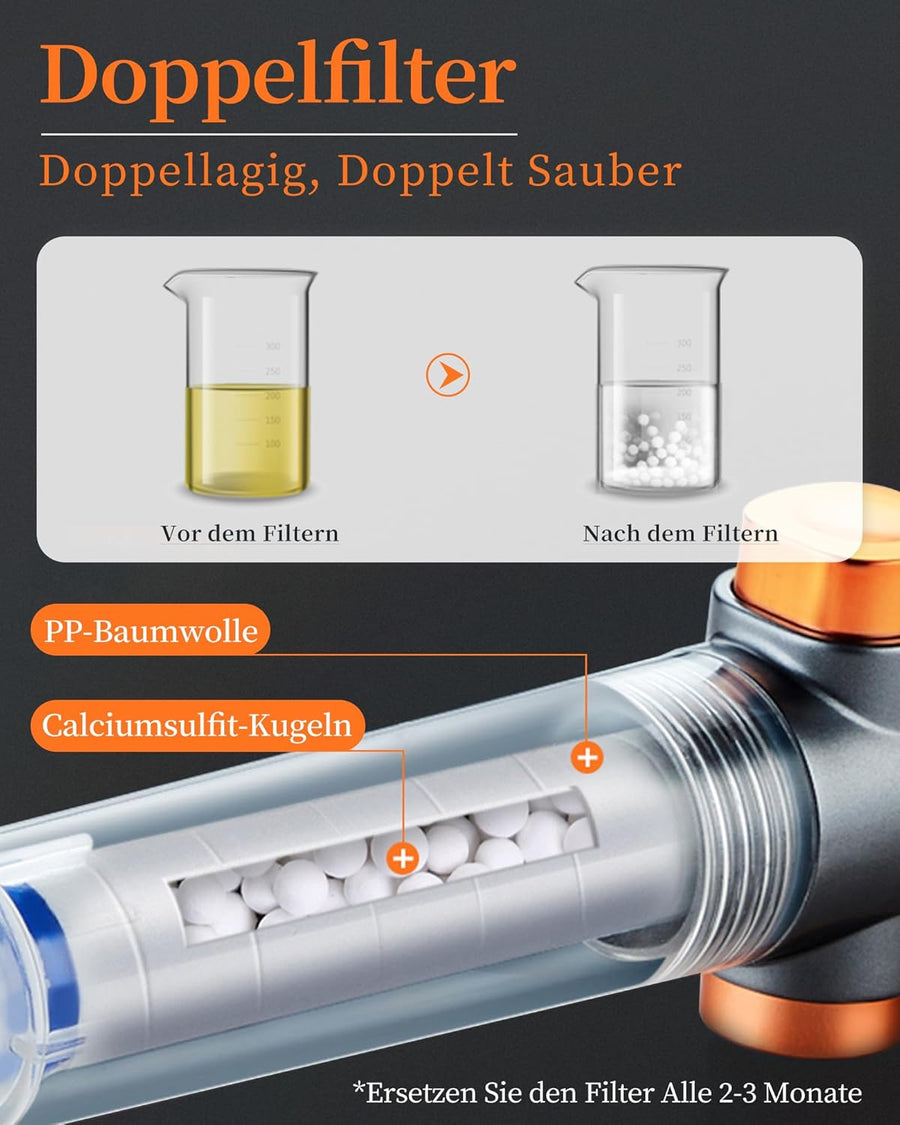 Sparduschkopf Wassersparend mit 3 Strahlarten, Druckerhöhend Handbrause mit Filter Gegen Kalk, Regen