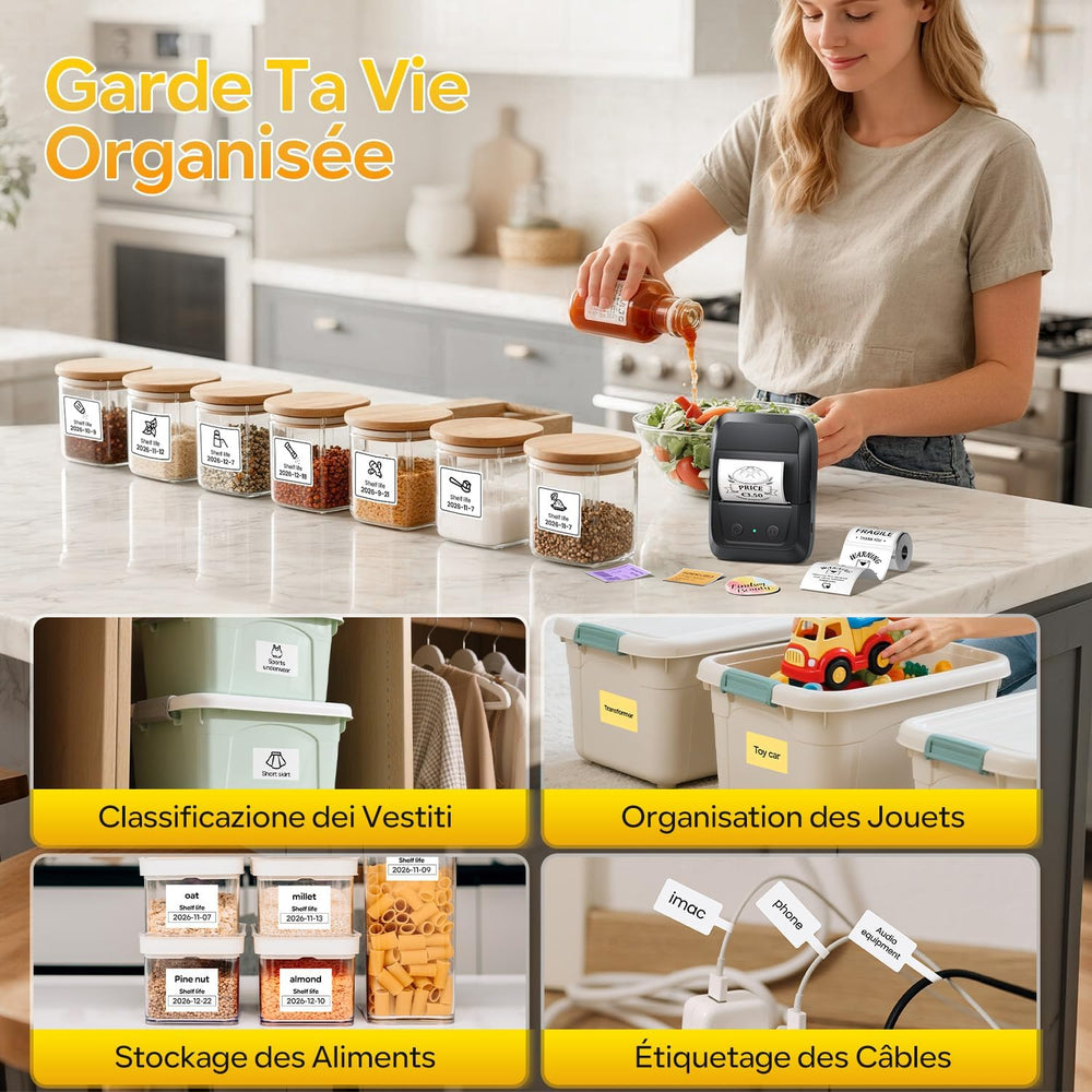 Memoking Etikettendrucker Selbstklebend, Bluetooth Label Printer mit 2000 Symbolen und 300 Vorlagen,