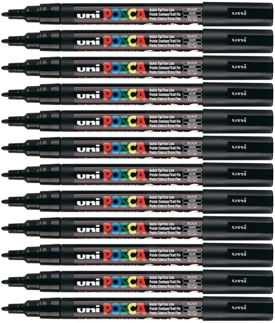 Uni-Ball 9002000 Tintenroller PC3M, feine Spitze, 0,9–1,3 mm, Schwarz, 12 Stück Black, Black