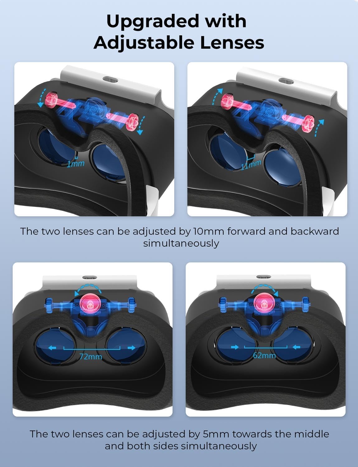 - Verbesserte einstellbare Objektive: Die neu veröffentlichte DEVASO VR Brille ist kompatibel mit Nintendo Switch & Switch OLED, verfügt über ein Upgrade mit einem einstellbaren Objektiv, mit dem Sie das Switch Objektiv nach links/rechts und