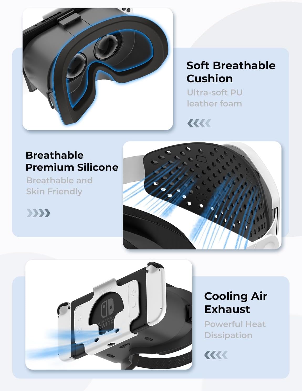 - Hochwertige Materialien: Hergestellt aus EVA- und Oxford-Materialien, super leicht und langlebig, inklusive verstellbarem Kopfband und dickeren Materialien, um Ihr Gesicht zu berühren, keine Notwendigkeit, die Schalterkonsole in der Nähe Ihres Kopfes