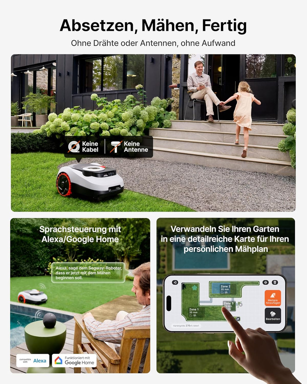 ANTHBOT Genie 1000 Mähroboter mit Einfacher Garage, Ohne Begrenzungskabel, RTK & 4-Kamera-Vision, KI
