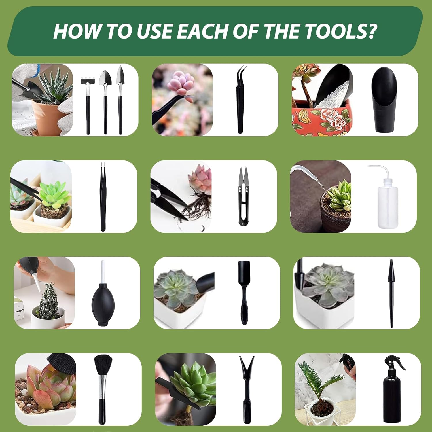 - SET ENTHÄLT: Das Sukkulenten-Werkzeugset enthält: 1 x Sprühflasche (300 ml), 1 x Sukkulenten-Giessflasche (500 ml), 1 x Paar Pinzetten mit gebogener Spitze, 1 x Paar Pinzetten mit gerader Spitze, 1 x Blattschneider, 1 x Luftstaubbläser, 2 x