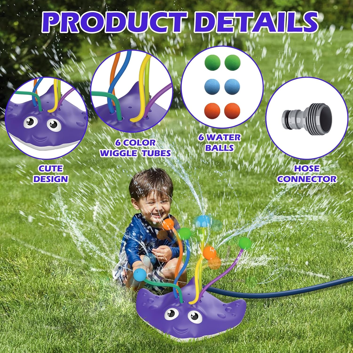 - 【360°-Outdoor-Spass】 Besonders beliebt waren die umherfliegenden Wassertentakelarme! Je nach Wasserdruck sprühen 360 Grad Wasserstrahlen 3–6 Meter weit in alle Richtungen – ein Spass für Erwachsene und Kinder.