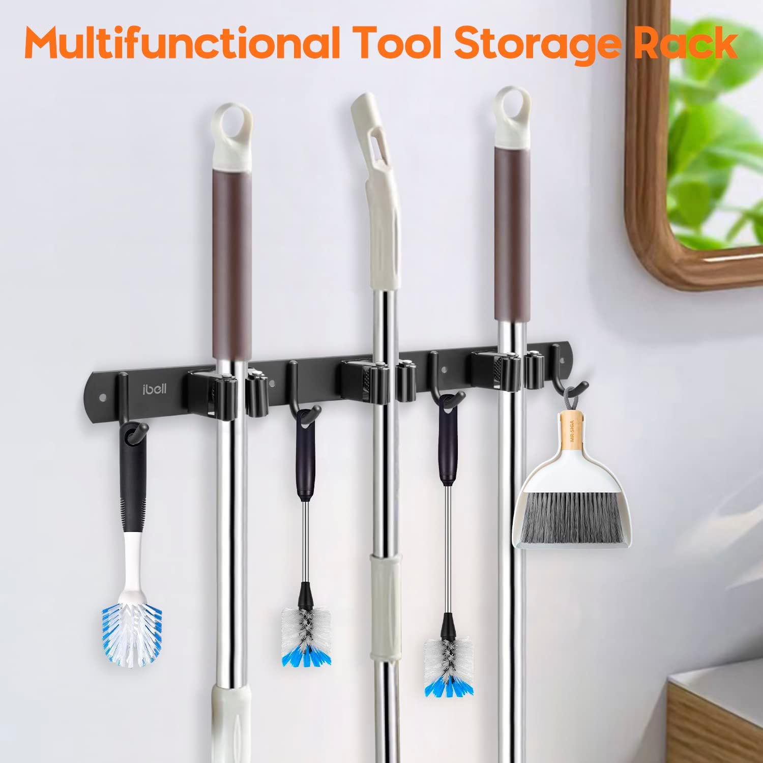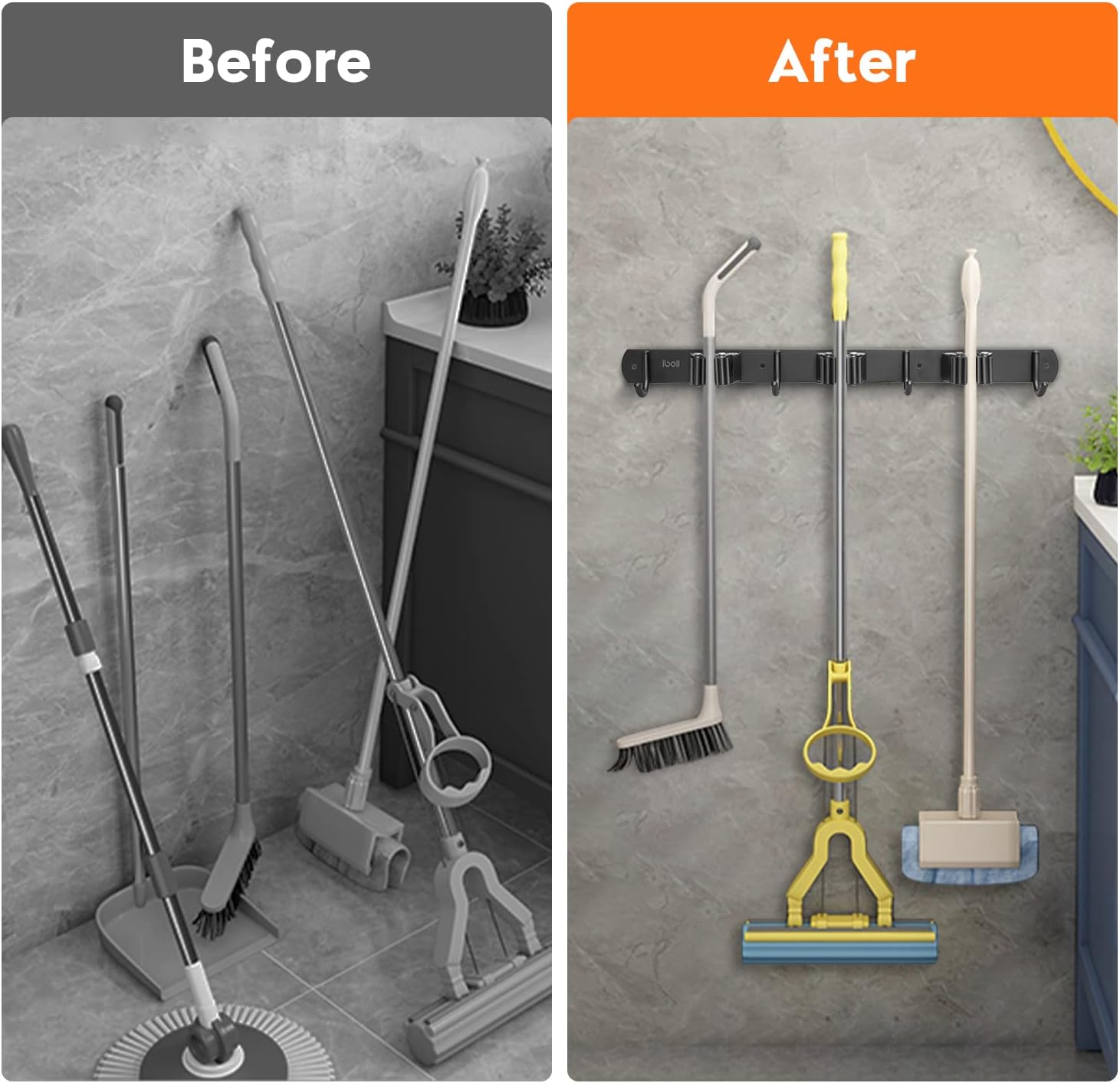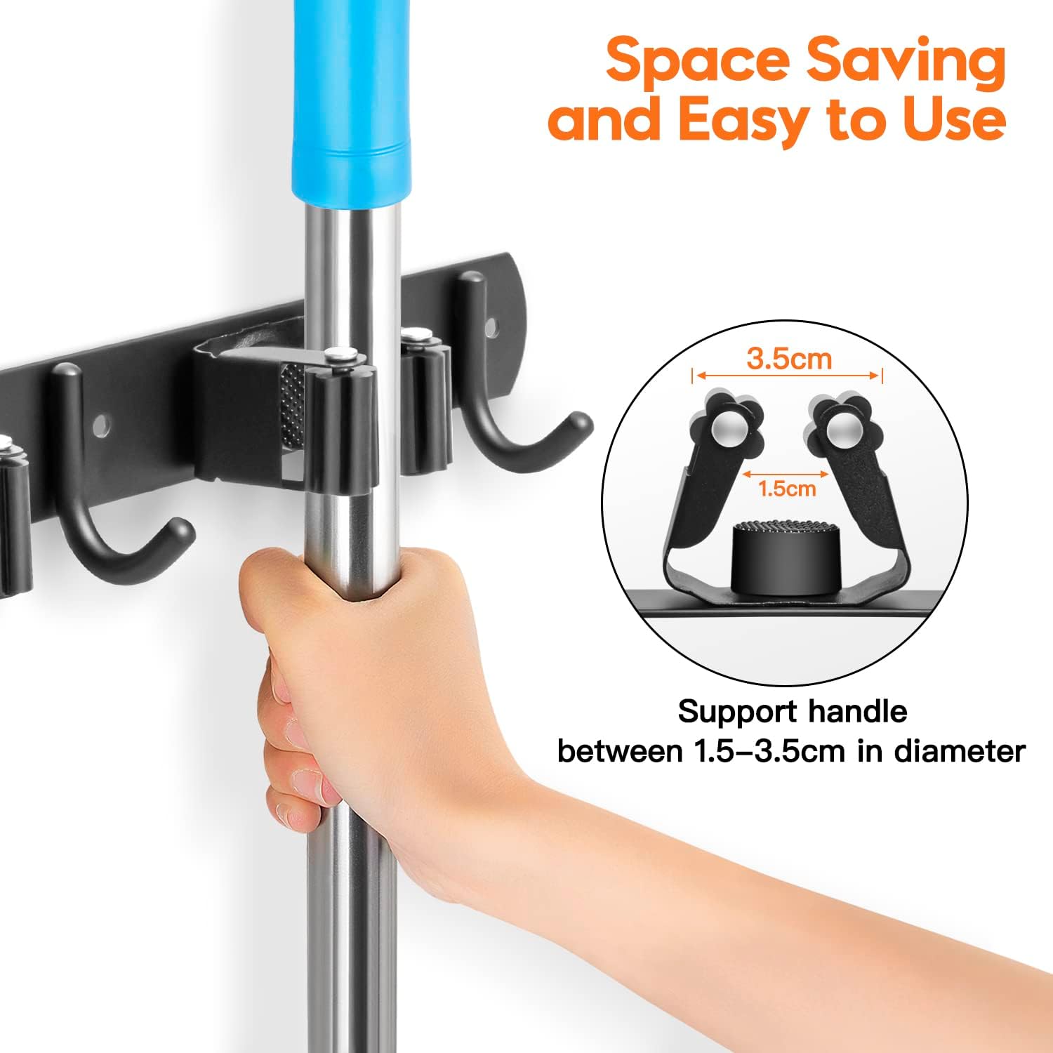 - 【Platzsparende und breite Anwendung】: Es ist geeignet für Waschküche, Küche, Garten, Garage, Speisekammer und Keller. Besen und Mopphalter Wandhalterung hält Reinigungsmittel organisiert. Sie können Ihren Besen, Mopp, Rakel, Kehrschaufel,