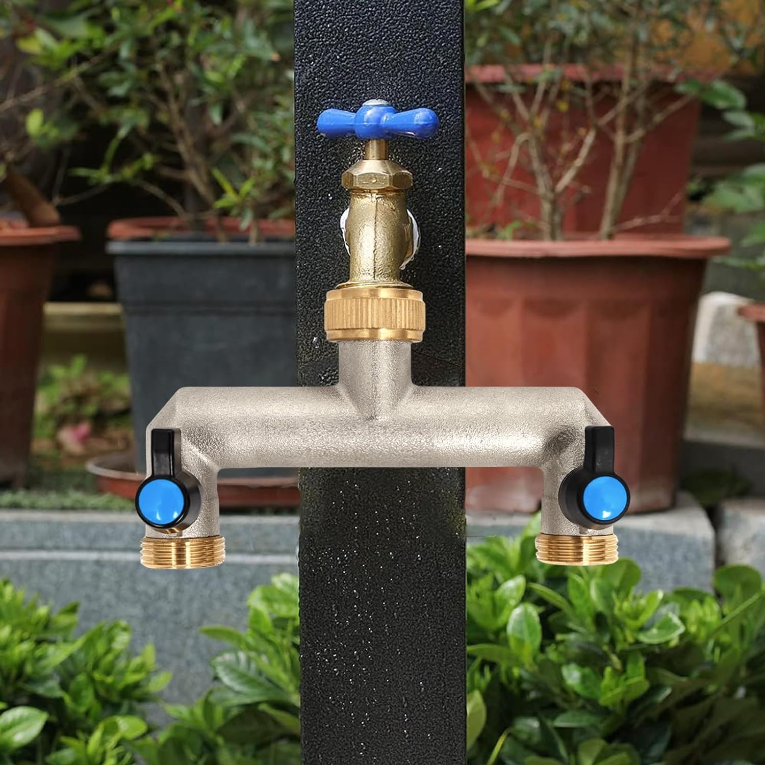 - 🏡🏡【Weit verbreitet】 Der Gartenhahn-Splitter eignet sich perfekt zum Bewässern von Pflanzen, Gemüse, Blumenbeeten, Rasenflächen, zum Spülen des Bodens und zum Waschen Ihres Autos oder zum Duschen Ihrer Haustiere.