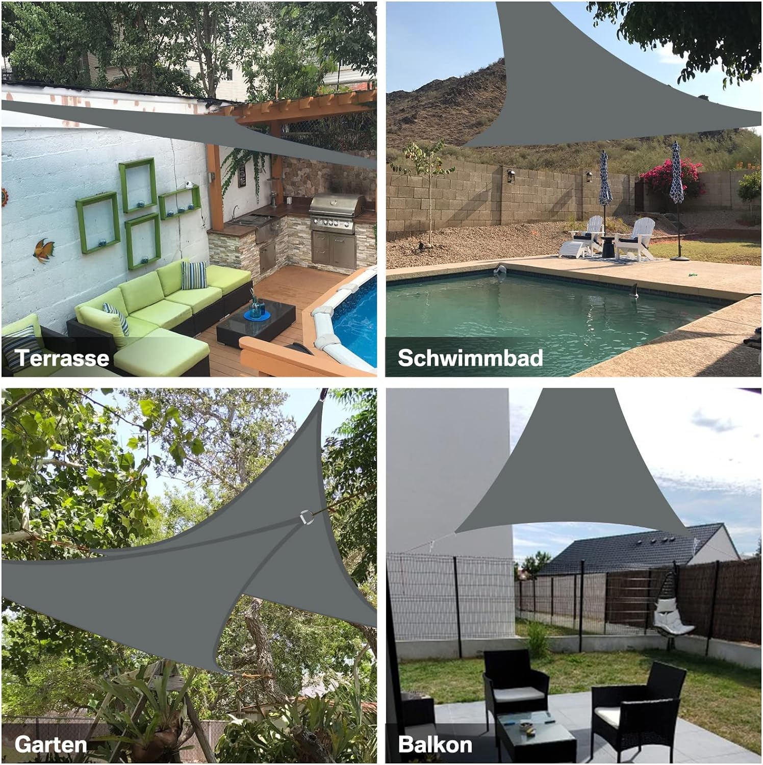 - 【UV-beständiges und wasserdichtes Sonnensegel】 Dieses dreieckige Sonnenschutzsegel bietet sicheren Schatten vor direkter Sonneneinstrahlung oder Regen. Es ist nicht nur wasserdicht, sondern auch zu 98% UV-geschützt. Lassen Sie sich und Ihre Familie einen sicheren und kühlen Bereich im Garten geniessen.