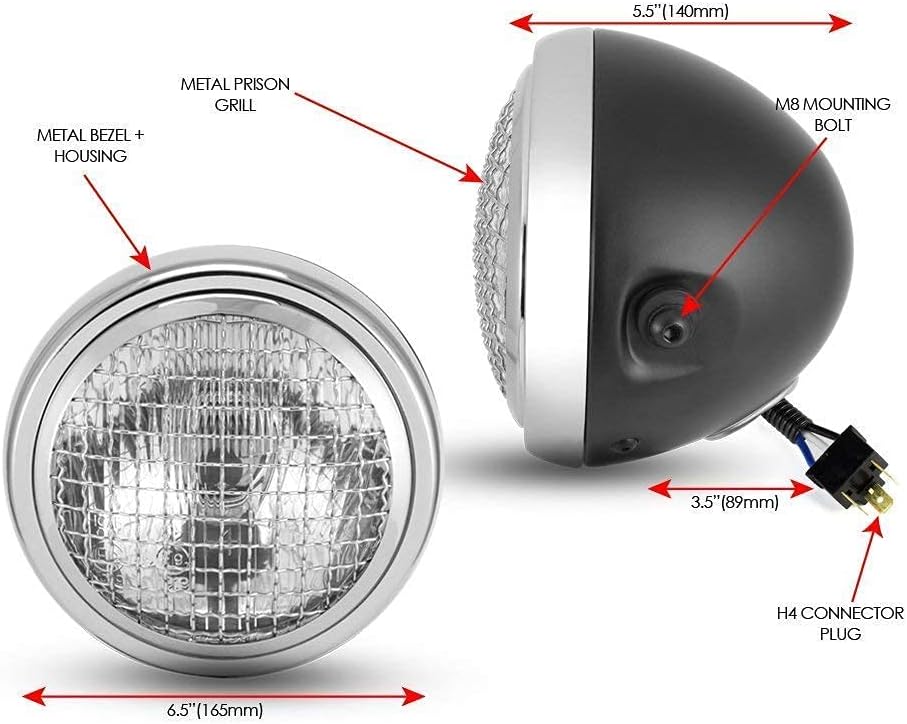 - Schön hergestellter und robuster Scheinwerfer: Funktion 1: Abblendlicht / Funktion 2: Fernlicht. Die Linse ist aus Glas und das Gehäuse aus Stahl.