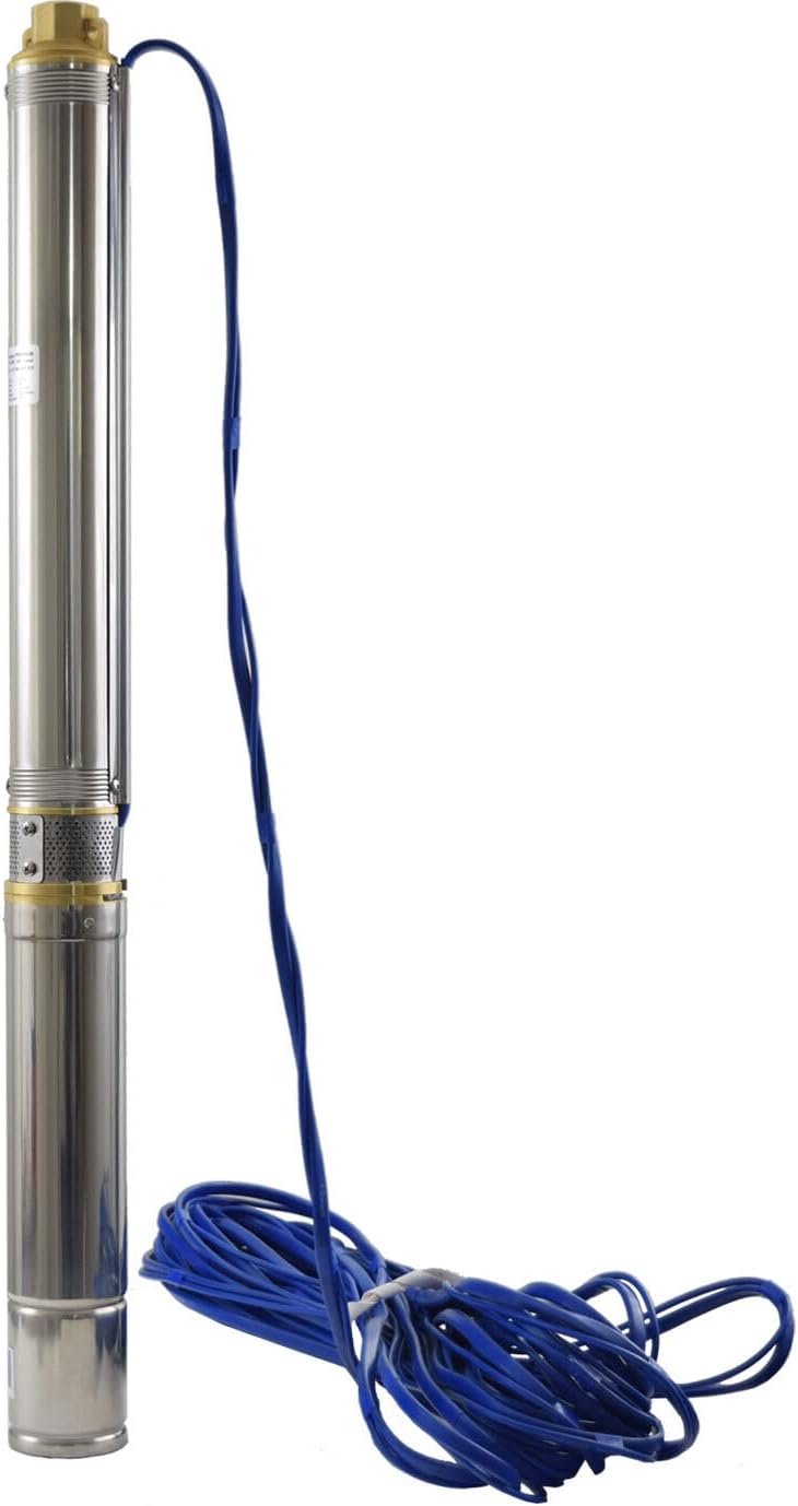 - alle wasserführenden Teile sin aus rostfreien Edelstahl und Messing und 14 Laufrädern aus Polyphenylenoxid, Schutzklasse: IP 68, Länge Pumpe: 87 cm, Durchmesser: 79 mm, Anschluss Druckseite: 1 Zoll IG (30,3 mm), Kabellänge: 20 Meter