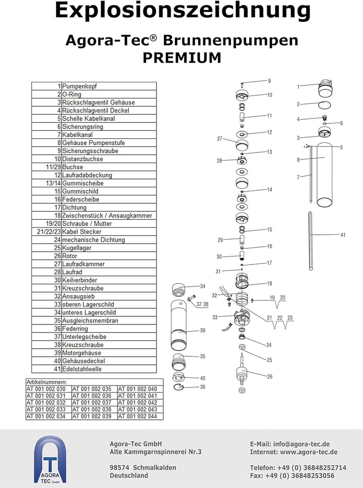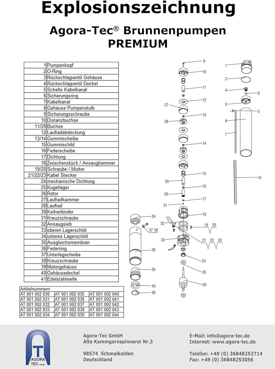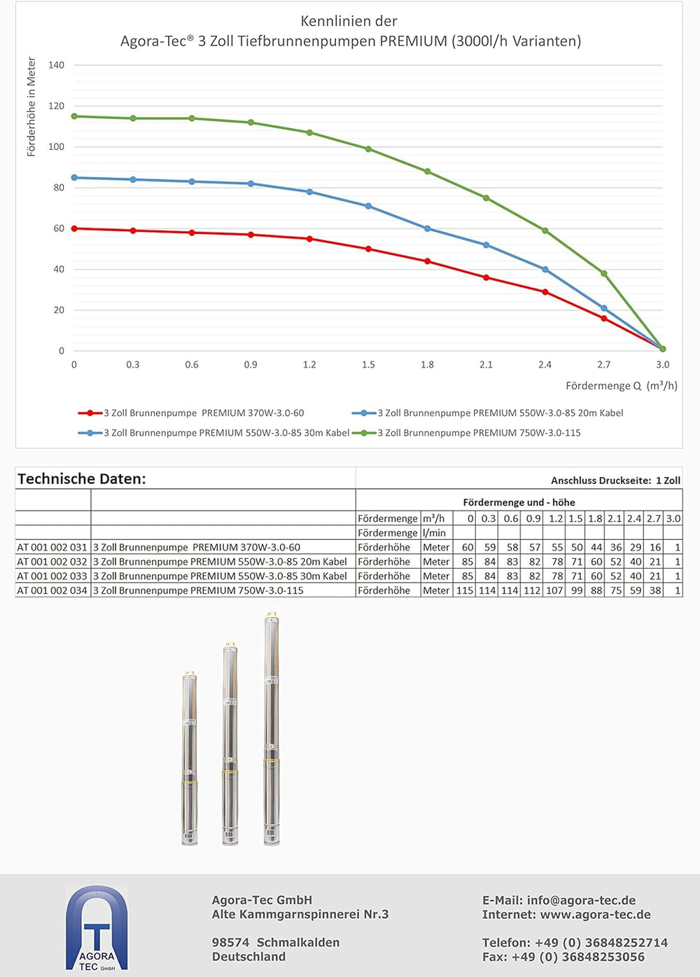 - 3 Zoll Tiefbrunnenpumpe der Marke Agora-Tec mit einer P2 Leistung von 370 Watt