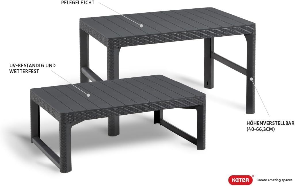 - BESONDERS VARIABEL: Klappbare, höhenverstellbare Beine, dadurch leicht als Loungetisch (40 cm Höhe) als auch als Esstisch (max. Höhe 66,3cm) nutzbar. Einfacher Aufbau.