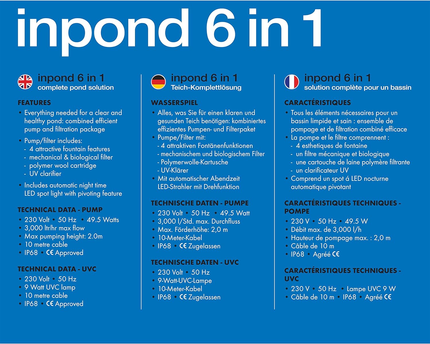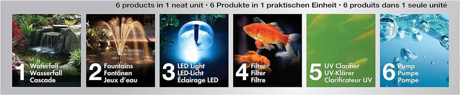 - UV-KLÄRER: Der eingebaute UV-Klärer tötet Algen ab und vermindert so die Grünfärbung des Wasser. So bleibt Ihr Teich dauerhaft sauber und klar.