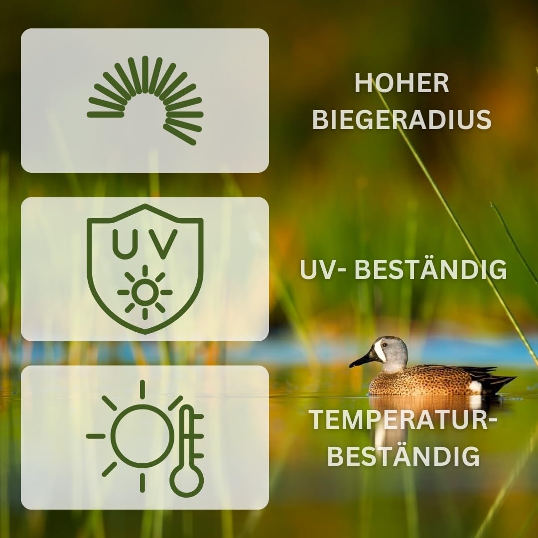 - HÖCHSTE QUALITÄT: Unser 25 mm Teichschlauch ist sehr flexibel durch die verarbeitete Spirale wird der Schlauch vor dem Abknicken geschützt.