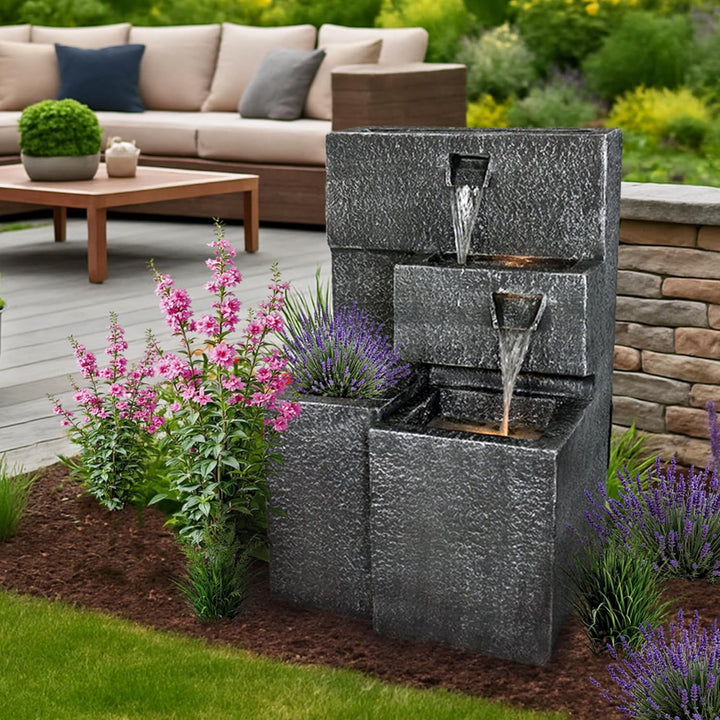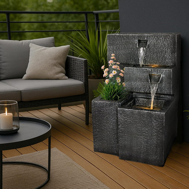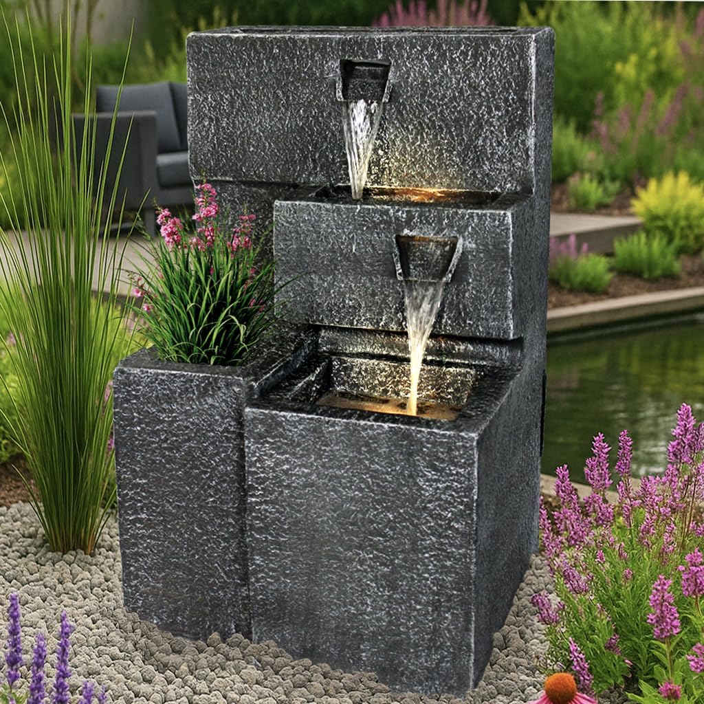 - Komplettes Springbrunnenset ! Inkl. Wasserpumpe und LED Beleuchtung in Warm-Weiss