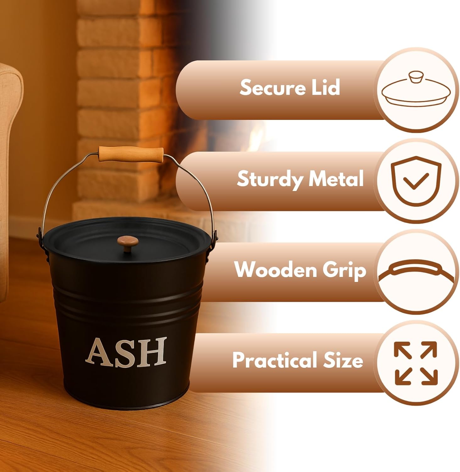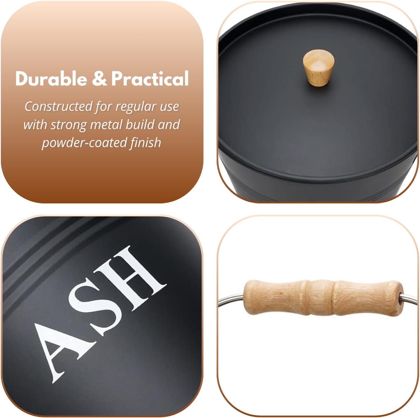 - Ascheeimer mit Deckel: Dunkelgrauer Metalleimer. Zuverlässige und praktische Lösung für den Umgang mit Asche. Auch für die Lagerung von Kohle, Holz und Anzündholz.