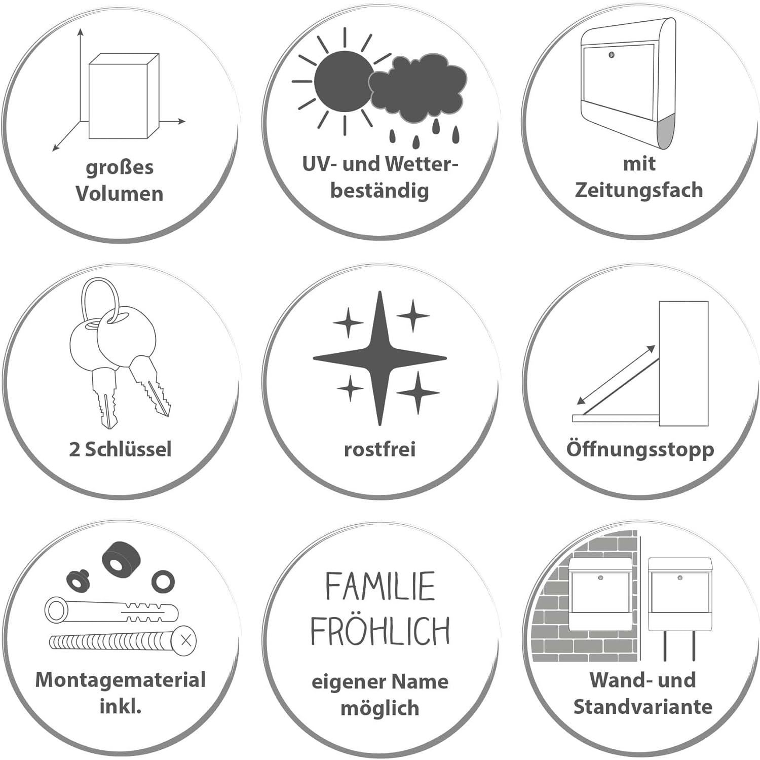 - DETAILS: Der Postkasten personalisiert aus pulverbeschichtetem Stahl sind 39x47x14cm gross. Das Motiv besteht aus einer wetter- und UV-resistenten Folie, die mit einem Schutzlaminat überzogen ist. Montagematerial und zwei Schlüssel im Lieferumfang.