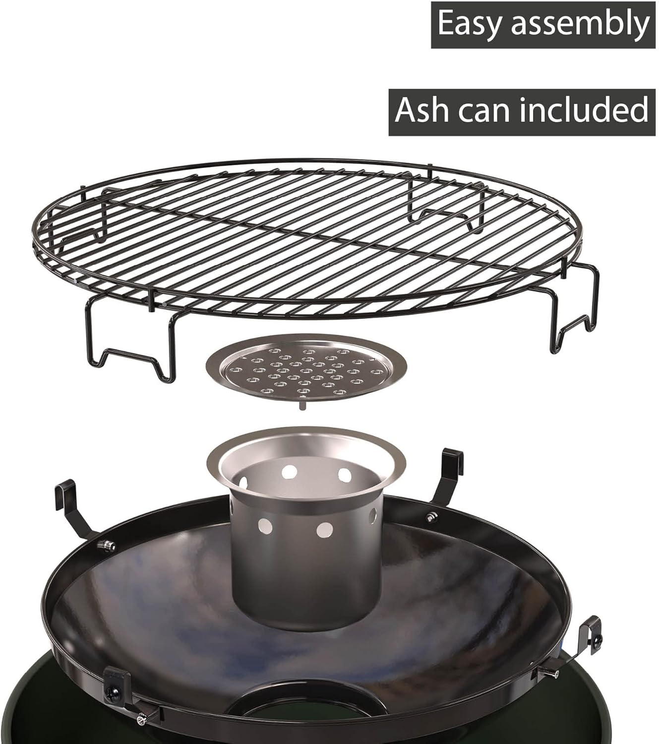- Das Modell verfügt über einen grossen runden Rost aus emailliertem Stahl, der auf zwei verschiedenen Höhen platziert werden kann. Auf diese Weise können Sie kinderleicht die Intensität/Temperatur bestimmen, bei der Sie grillen möchten.