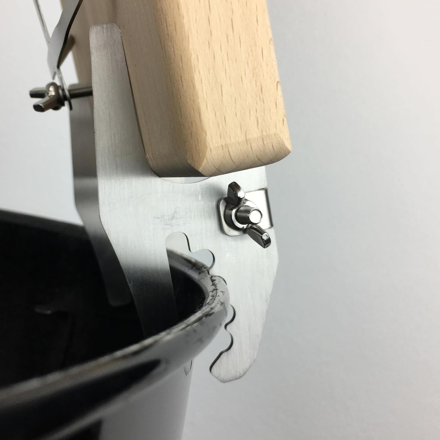 - EINSATZ AN FEUERSCHALEN UND GRILLS - Die Halterung passt perfekt an Feuerschalen mit einer Wandstärke bis 6mm. Ausserdem passt die Halterung auch an Webergrills mit einer gebogenen kante nicht dicker als 8mm.