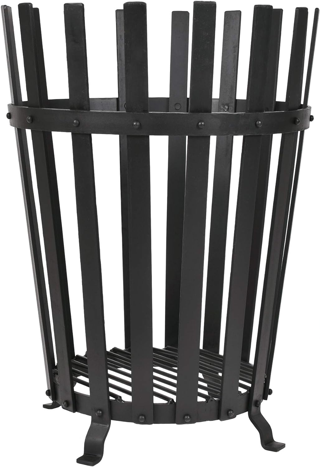 - Dieser runde geschmiedete Feuerkorb ist ein Qualitätsprodukt aus dem Sortiment von Battle-Merchant. Je nach Bauart Ihrer Terrasse sollten eine Gehwegplatte oder Metallplatte untergelegt werden, um den Kontakt mit herunterfallender Glut zu verhindern. Im