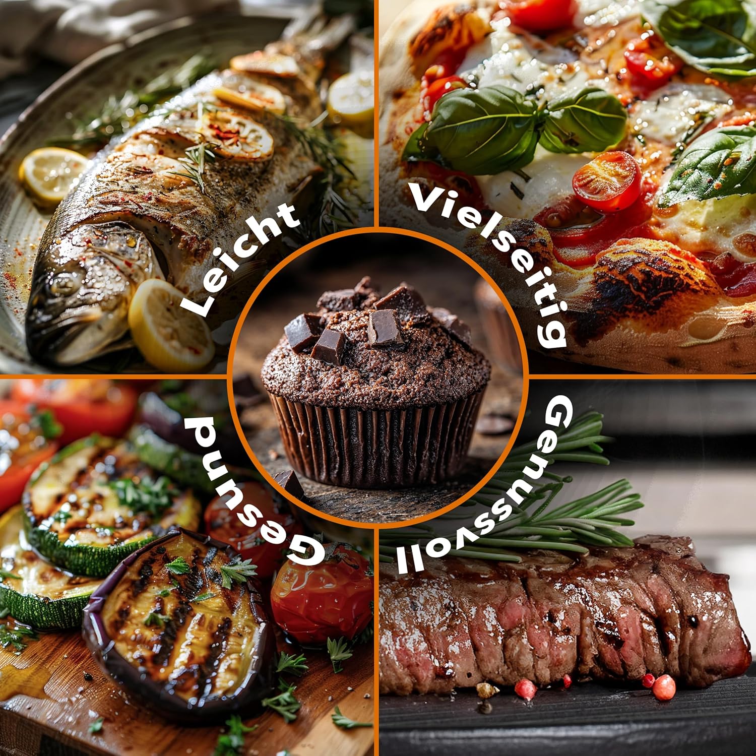 - Kurze Zubereitung. Laaaaanger Genuss. Mit dem PizzaAirfryer400 revolutionierst du dein Kocherlebnis. Der Ofen, der Temperaturen von 40 °C bis zu 400 °C erreicht, verspricht kulinarische Vielfalt – von der italienischen Pizza über saftige Steaks bis