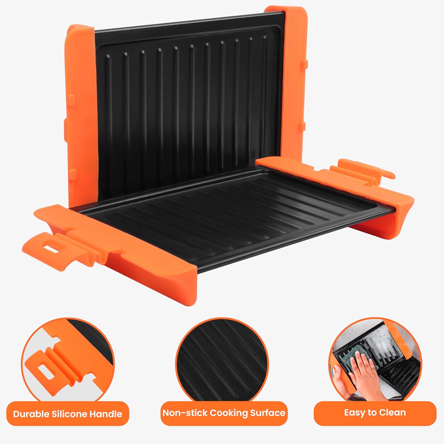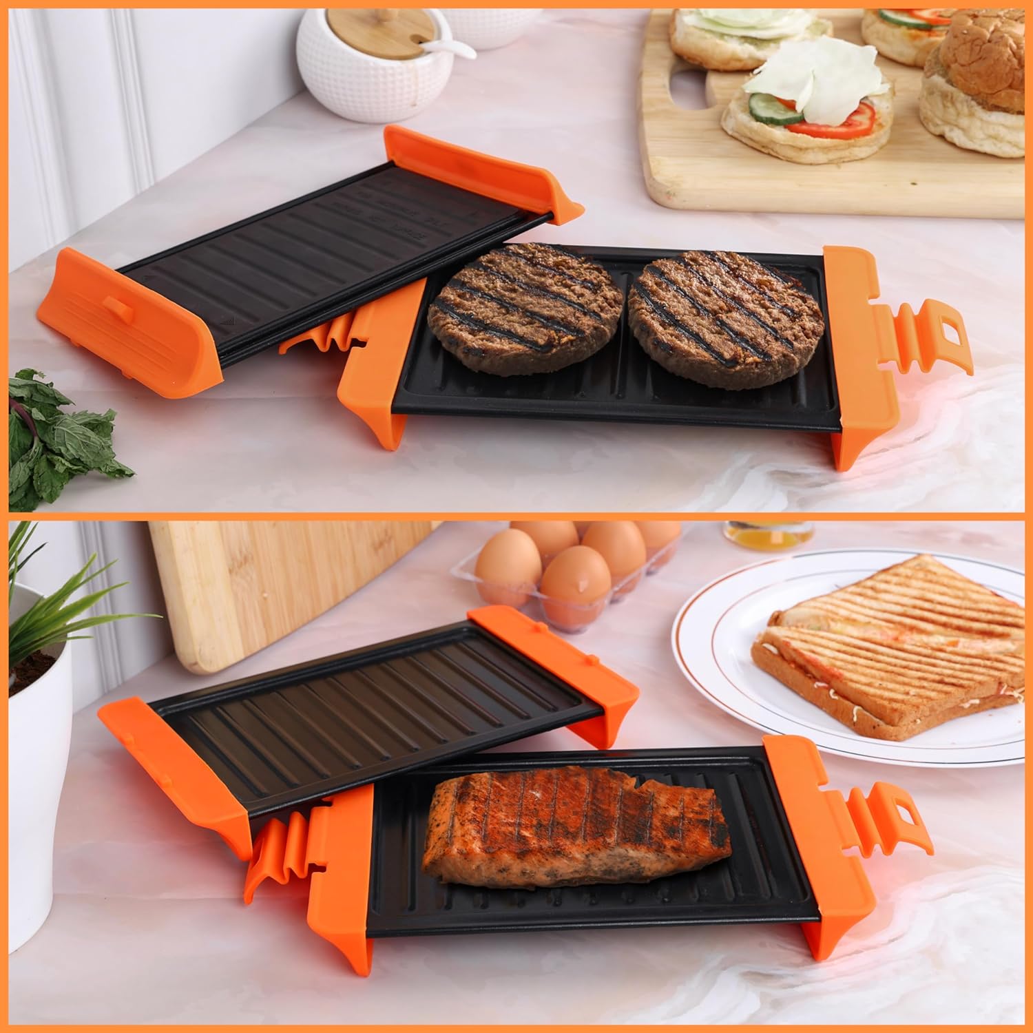 - ANTIHAFT: Verwandele deine Mikrowelle in einen Grill und erziele einen ähnlichen Effekt wie mit dem Herd oder Backofen. Die untere und obere Platte erhitzen sich schnell für ein einfaches Grillen und ergeben ein knuspriges, goldbraunes Grillgericht.