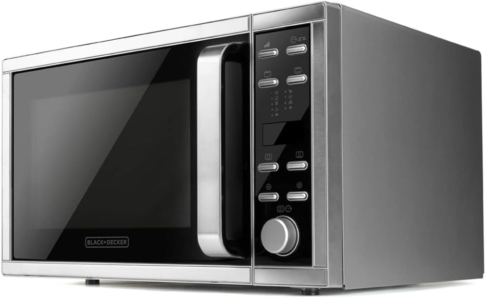 - 25L VOLUMEN: Kochen, Erhitzen, Überbacken, Backen und Auftauen mit der 25L Mikrowelle von Black+Decker. Eine praktische und sehr einfach zu bedienende Mikrowelle, mit der Sie beste Ergebnisse erzielen. 95-Minuten-Timer. Digitaluhr