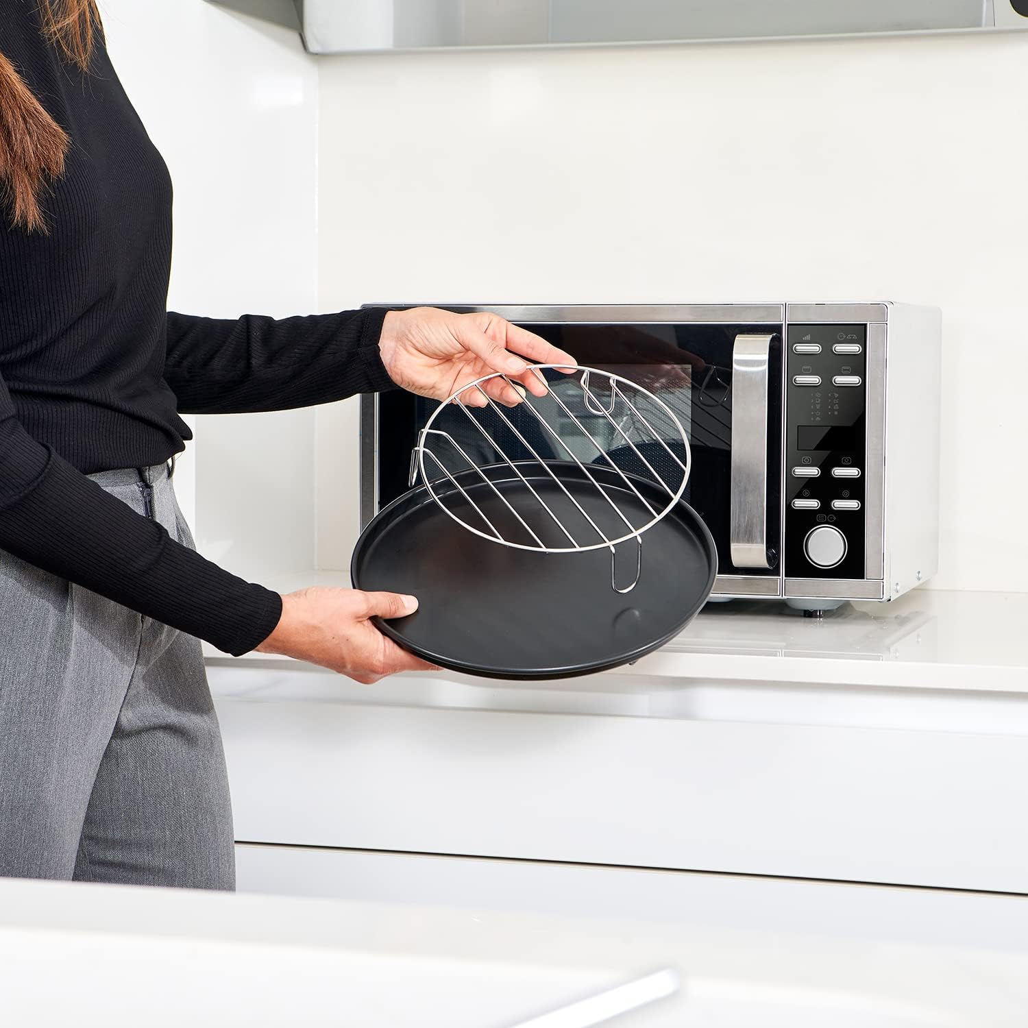 - GRILL + KONVENTION: Die Mikrowelle verfügt über einen Grillaufsatz mit dem Sie, dank einer Grillleistung von 1000 W, alle Arten von Speisen grillen können. Während des Konvektionskochen, zirkuliert die heisse Luft in der Mikrowelle um schneller und gleichmässiger knusprige Speisen zu zaubern