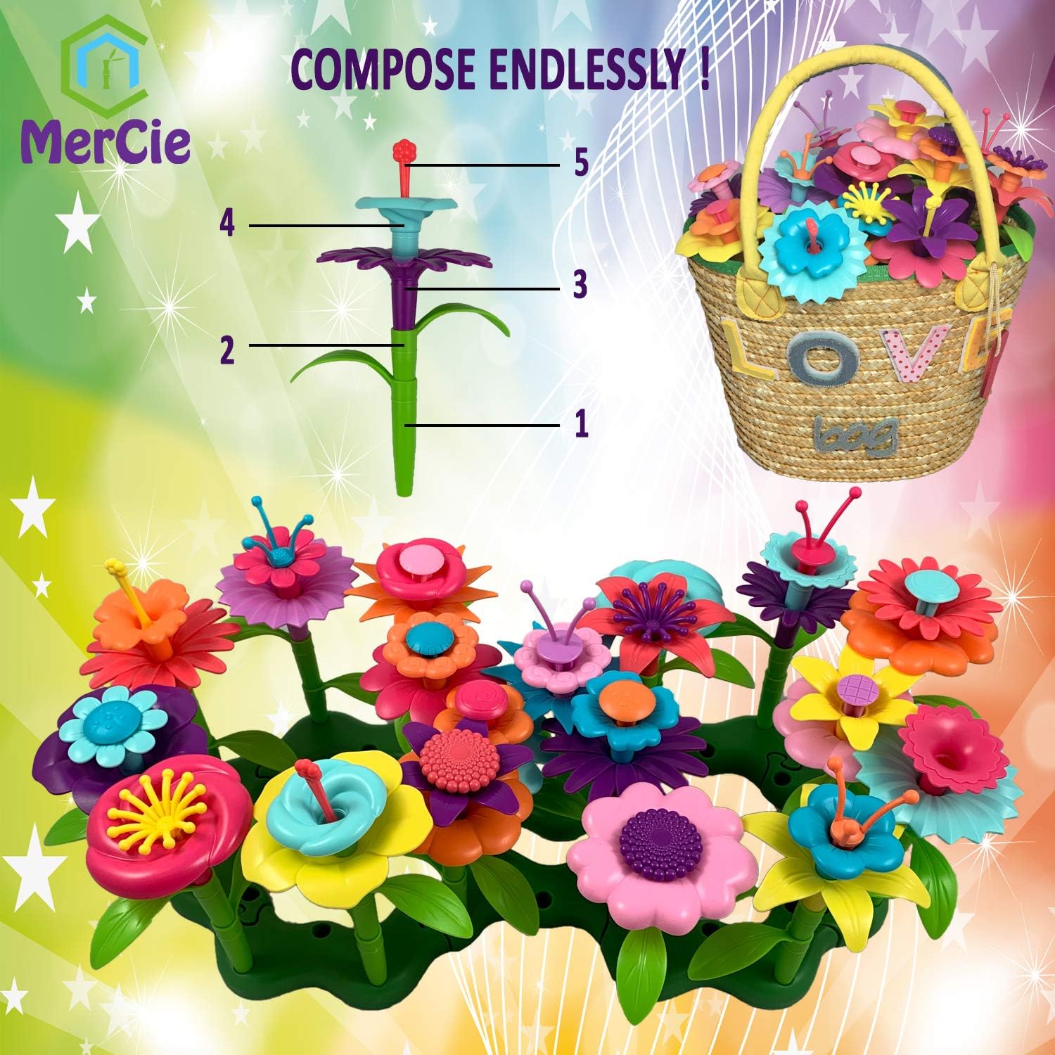 - 【98 STÜCKE】: leuchtende Farben für diese 8 Basen, 38 Stängel und Blätter, 34 Blüten und 18 Staubblätter. Lassen Sie sich nicht von Angeboten täuschen, die mehr Elemente enthalten, die nur nicht verwendete Stämme hinzufügen ...