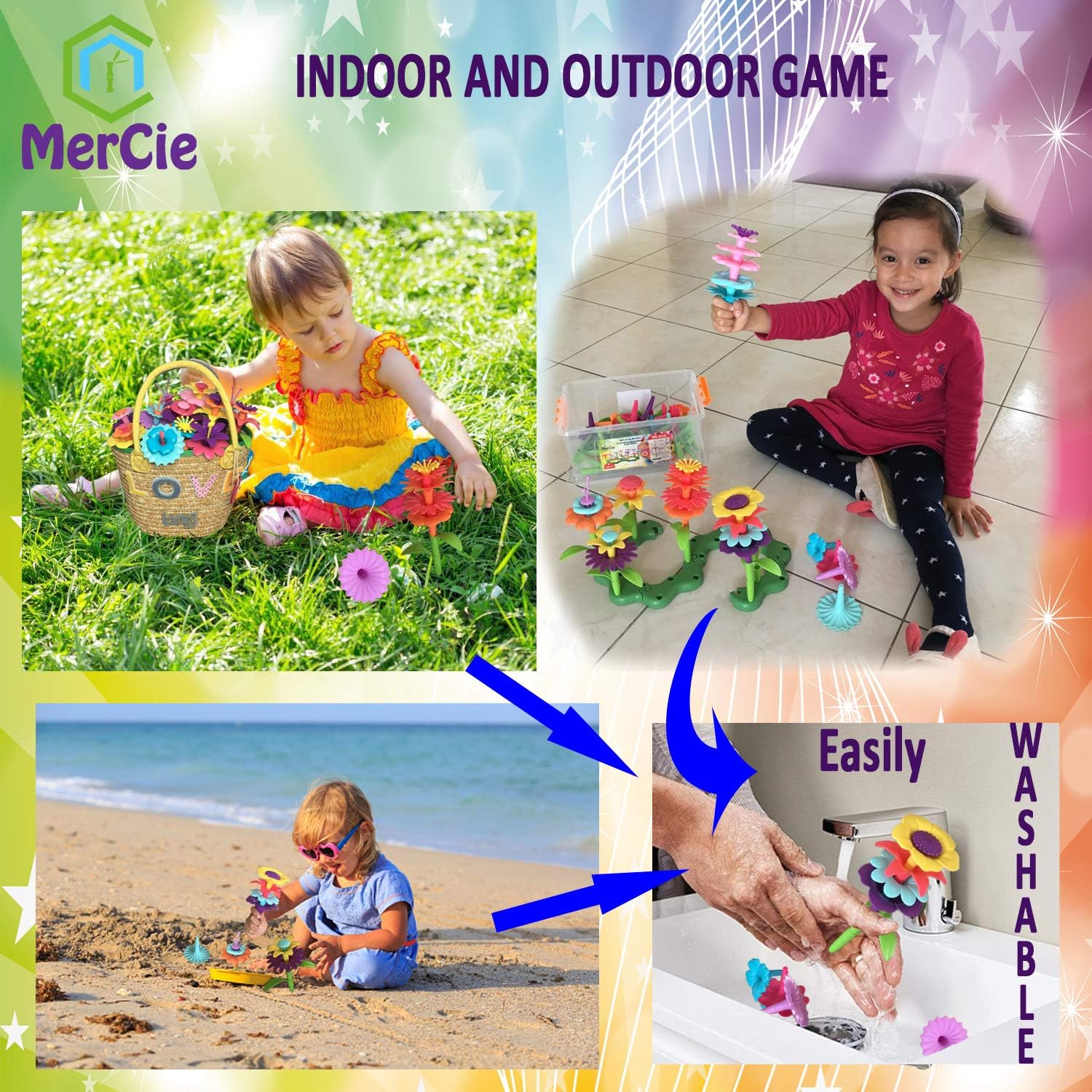 - 【FÜR INNEN UND AUSSEN】: Ihre Tochter kann sowohl im Haus als auch draussen im Garten oder im Sand spielen. Die Elemente lassen sich leicht maschinell reinigen.