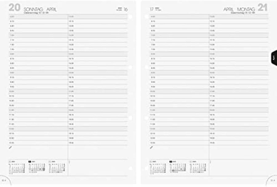 - 1 Seite = 1 Tag, 1 Seite Monatsübersicht vor jedem Monat