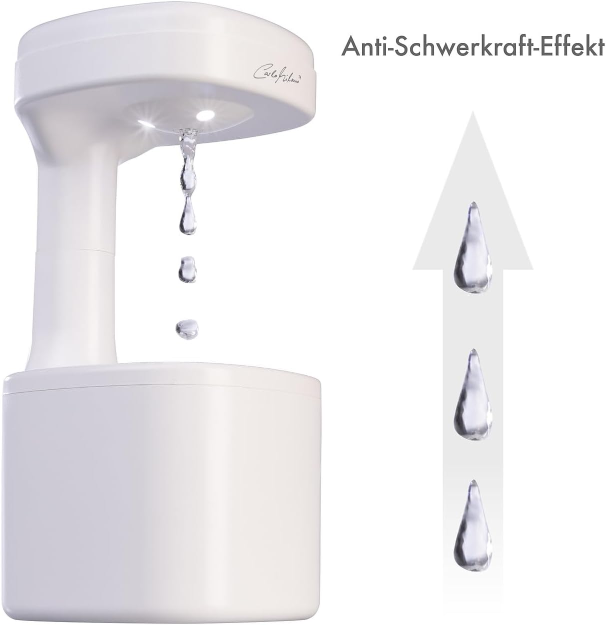 - Anti-Schwerkraft-Effekt • Automatische Abschaltung bei leerem Wassertank • Stromversorgung: lädt über USB-C (Netzteil bitte dazu bestellen)