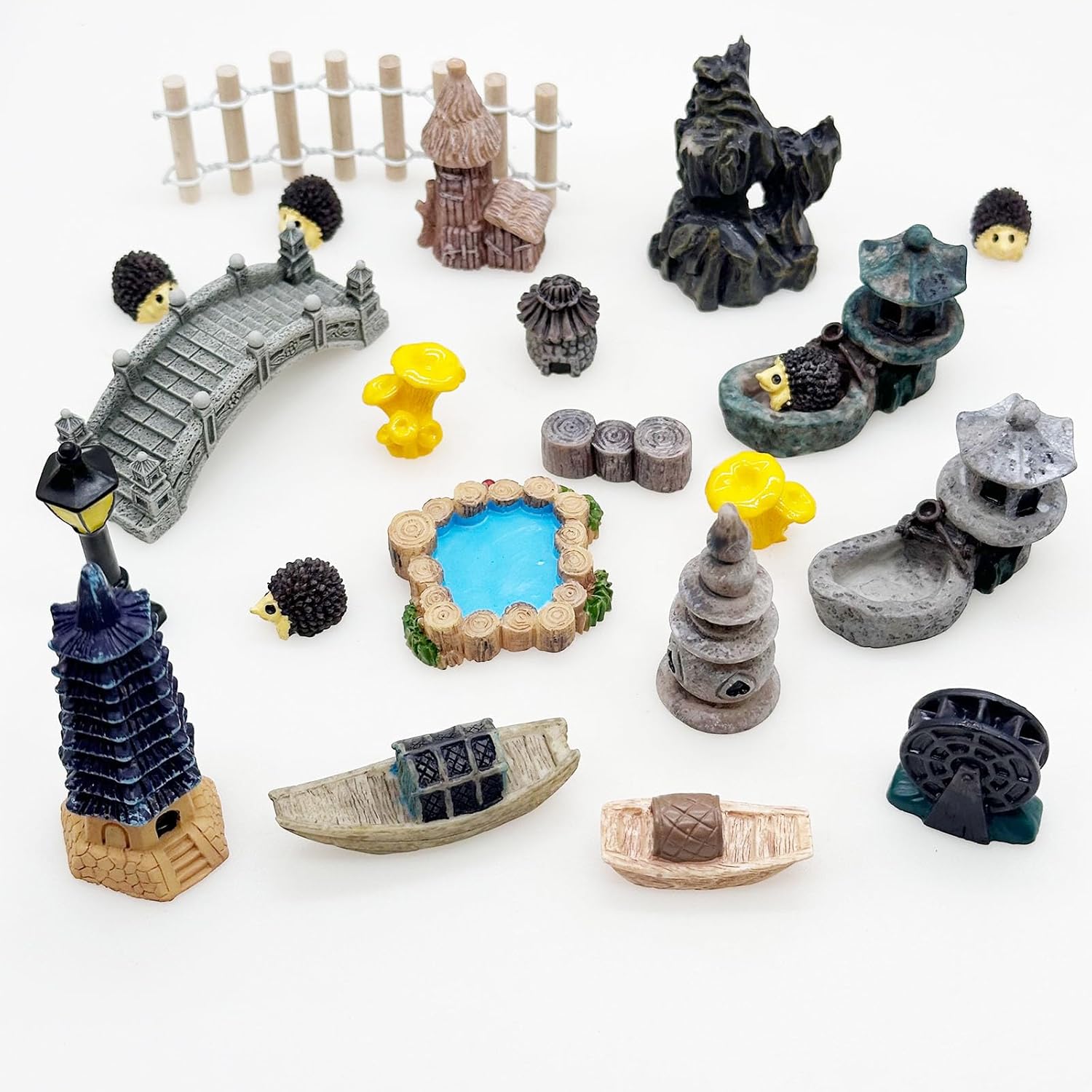 - Paket enthalten: 44 stück mini Zen gartenzubehör, wie mini modellbäume, mini zäune, mini teiche, mini brücken, mini boote, mini tische, mini stühle, mini steingärten, mini häuser, mini lampen, mini steine, etc.
