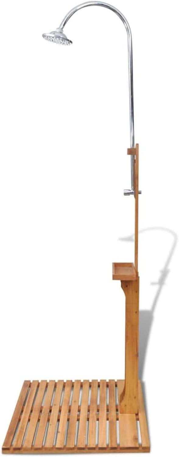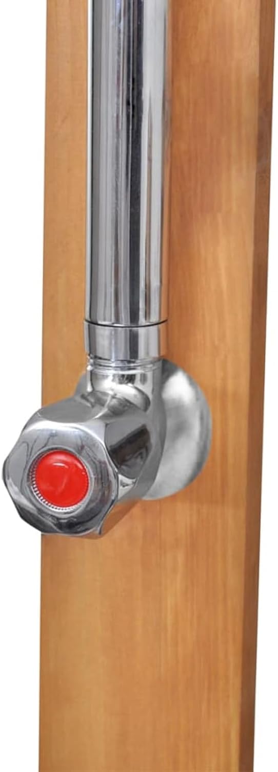 PRODUKTBESCHREIBUNGEN Gefertigt wird die Gartendusche aus Hartholz und Tannenholz, welche sich durch ihre absolute Witterungsbeständigkeit und Langlebigkeit auszeichnen. Die Gartendusche kann Sonnenlicht, Regen und Frost widerstehen und sorgt für kühle Erfrischung direkt in Ihrem Garten, beim Camping oder nach dem Schwimmen. Der Wasserdruck lässt sich mittels Hebel stufenlos regeln. Weiterhin besitzt die Dusche einen drehbaren Duschkopf. Material: Hartholz + TannenholzMasse: 75 x 75 x 221 cmDurchmesser des Eisenrohrs: 2,2 cmInnendurchmesser von Wassereingang: 1,0 cmAussendurchmesser von Wassereingang: 1,3 cmAbstand zwischen Duschkopf und dem Boden: 198 cmAbstand zwischen Box und Boden: 80 cmMasse der Box: 30 x 12 x 3 cmMasse der Bodenplatte: 75 x 75 cmDicke der Latte: 1,5 cmDrehbare DuschkopfWasserdruck mittels Hebel stufenlos regeln