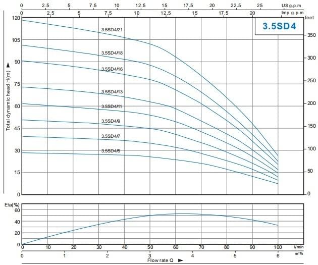 - 3,5 Zoll Brunnenpumpe Edelstahl 1100 Watt 6000 L/h, 9,1 Bar Druck Förderhöhe 91 Meter
