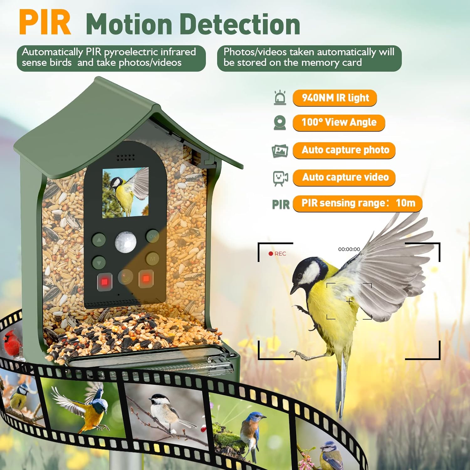 - 🐤【PIR Automatic Bird Sensing】Wenn vögel innerhalb von 10m fliegen, wird der PIR-bewegungssensor des vogelfutters ausgelöst, um bilder oder videos automatisch zu erfassen und zu speichern (auf Anfrage im voraus eingestellt, speicherkarte muss