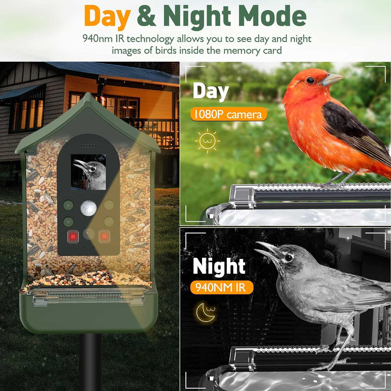 - 🐤【Tag und Nacht】Die nachtsichtfunktion des vogelfutters mit kamera ermöglicht es ihnen, ihre gefiederten freunde auch nach sonnenuntergang weiter zu beobachten. Das IR-licht der kamera schaltet sich automatisch ein, wenn sich die umgebung