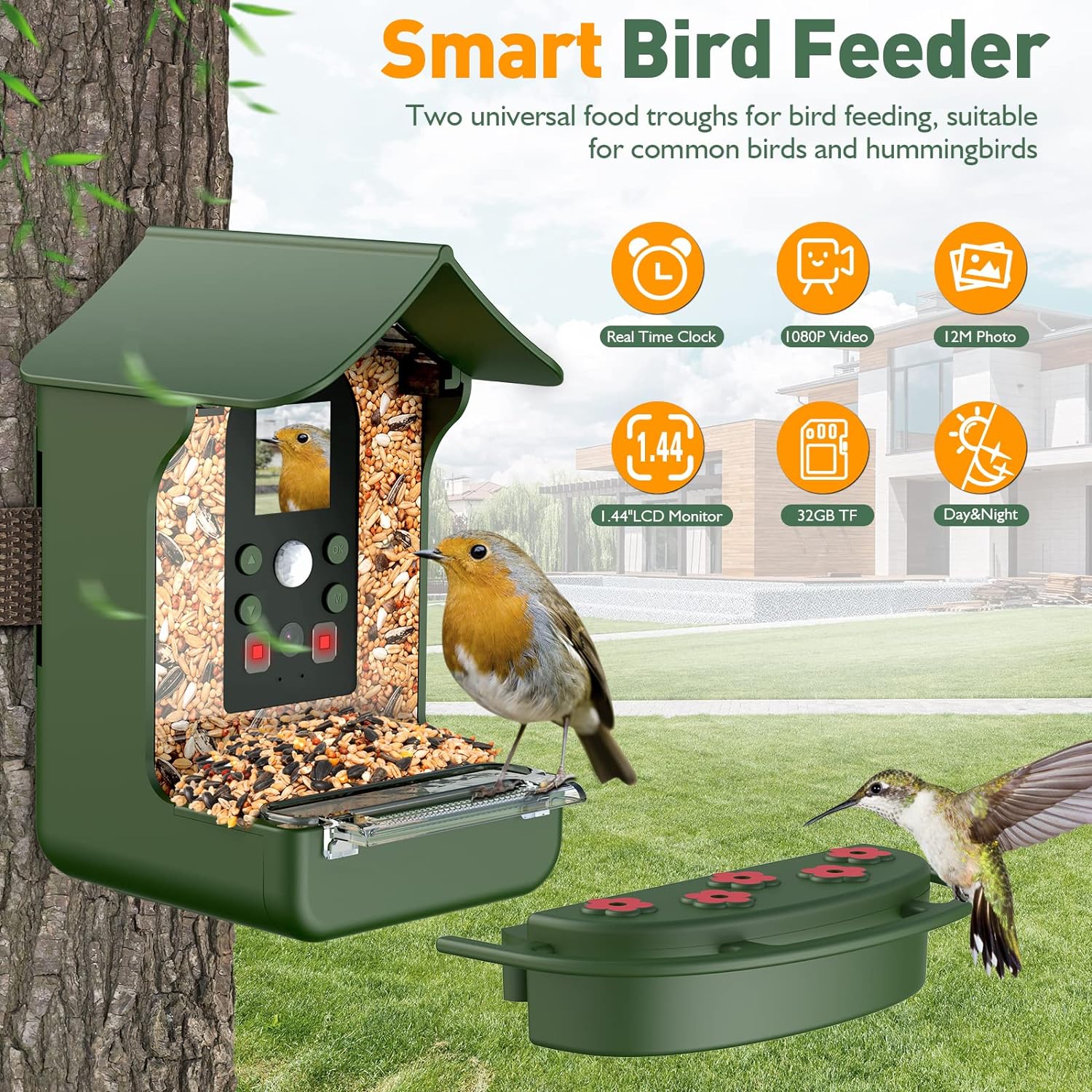 - 🐤【Bird and Hummingbird Feeder】Vogelfutterhaus mit kamera kommt mit einer auswahl von zwei verschiedenen fütterungsschlitzen. Die klare acryl schallwand hält 700ML von vogelfutter und mit einem dach, um den regen von den Vögeln zu halten, ist es