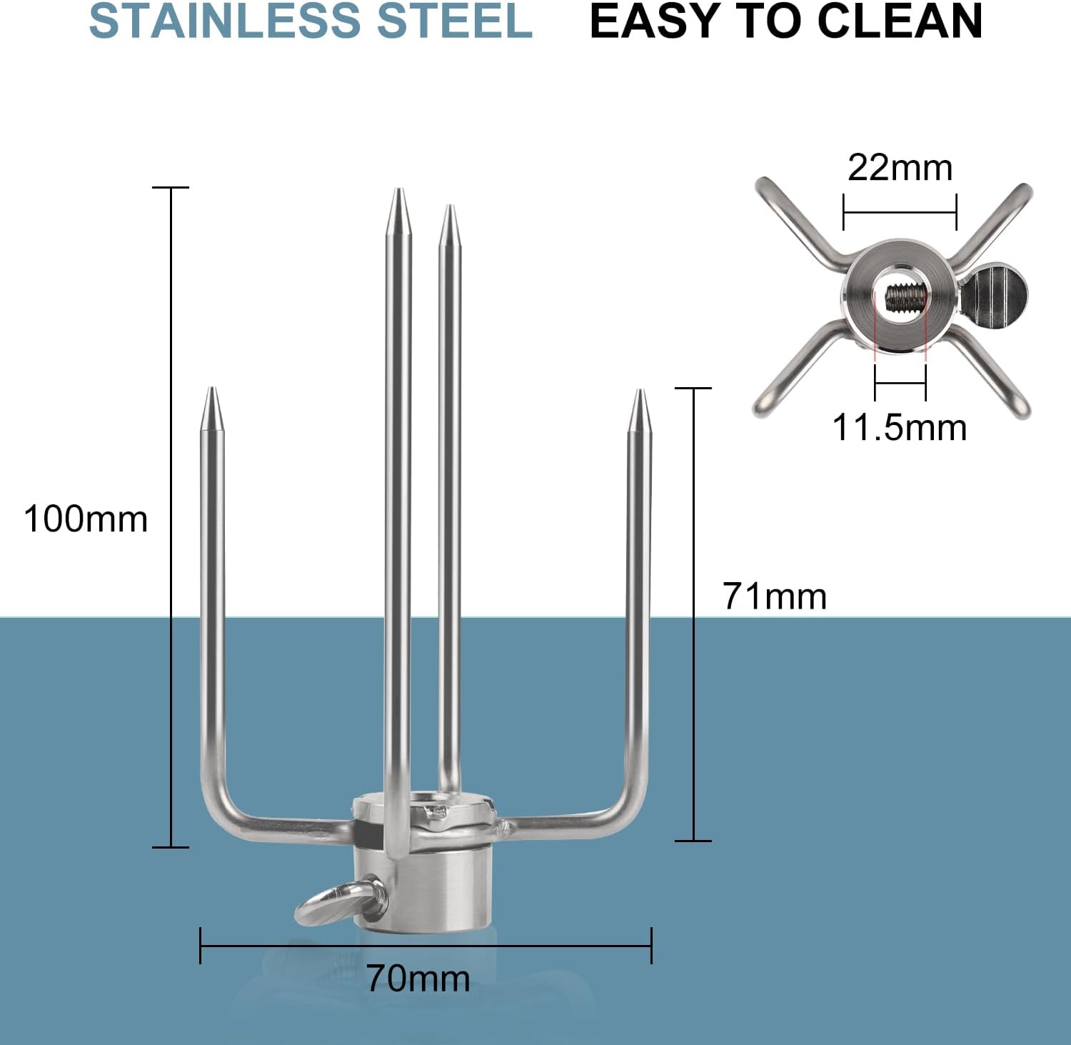 - 🍖【UNIVERSAL】: Der Fleischstift hat einen Durchmesser von 11,5 mm sowie eine Flügelschraube mit einfacher Einstellung für eine schnelle und einfache Anpassung der Spiessgrösse für mehr Vielseitigkeit.