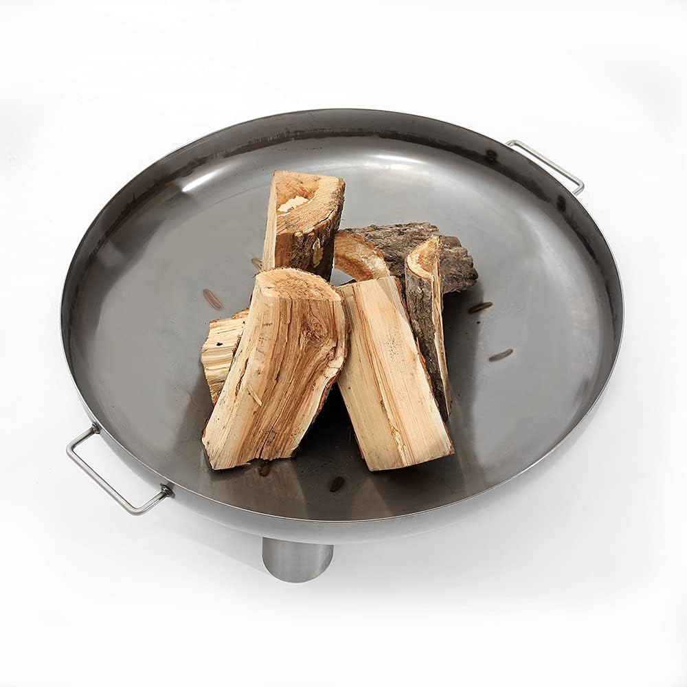 - Sie erhalten eine Feuerschale aus eigener Herstellung in Deutschland. Sie besteht aus rostfreiem Edelstahl (V2A) mit vergleichsweise dickem und robustem Material von 2,5mm Stahlstärke, einem Durchmesser von 60cm und einer Höhe von 27cm. Die Schale ist